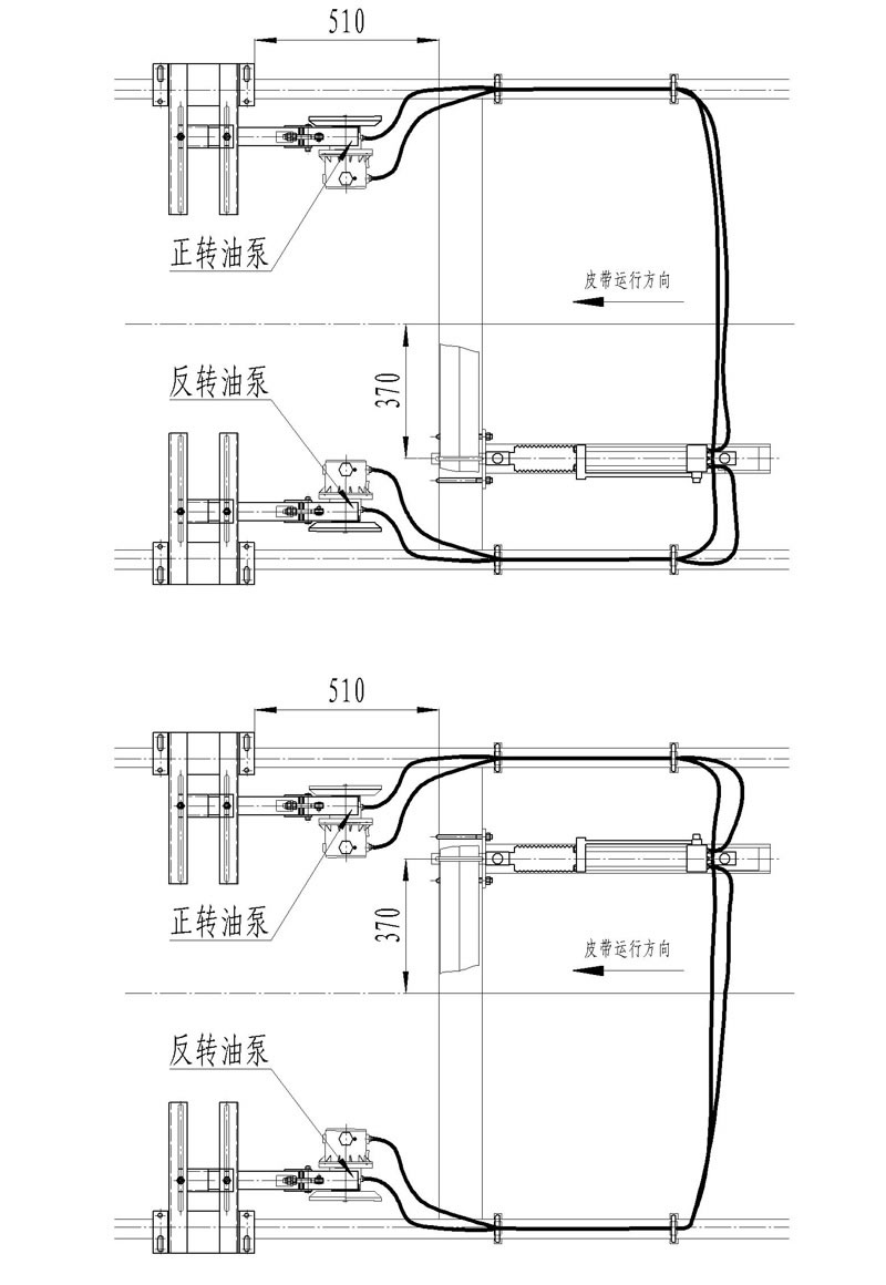 全部安裝完成后,模擬皮帶跑偏,輪流盤動左右檢驅輪,讓油缸帶動調心托輥旋轉,循環5次。