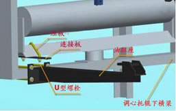 ② 把油缸座安放在調心托輥下橫梁上,先不擰緊螺母,待油缸安裝上調整到合適位置時再擰緊螺母。也不要旋緊螺母。