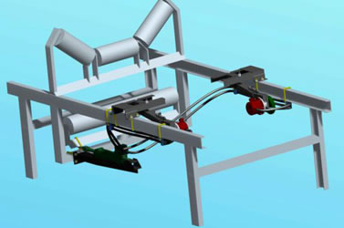 液壓糾偏裝置作用在上、下調心托輥上,皮帶跑偏時主動調整糾偏拖輥角度校正皮帶,不但可省掉立輥保護皮帶邊緣不受立輥摩擦損傷,而且快速校正皮帶。 自動檢測跑偏并予以校正,使皮帶始終處于合理狀態運行,對皮帶機安裝不當、運轉失靈、物料沖擊、負荷變化、皮帶斷面間伸長率不均勻造成皮帶跑偏有很好的調整作用。